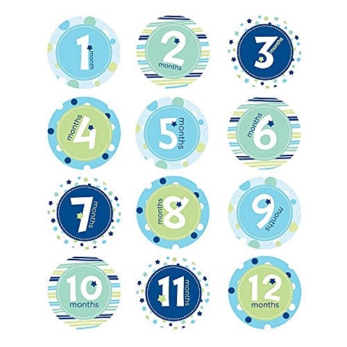 Adore every moment of baby’s first year with Pearhead’s original first year baby belly stickers. This blue sticker set comes with 12 stickers, one for each month of baby’s first year. The adorable little stickers are decorated with 4 different orange designs. Each month your pictures will look different and add that extra pop of fun with the patterned designs. The stickers are easy to use - simply peel and stick on baby's outfit. Snap a photo of baby with the sticker and post for everyone you love to see your adorable little pearhead! The matte stickers are perfect for pictures because they won’t give off a glare with any flash. Keeping it a surprise? These stickers are perfect for your baby shower so don’t forget to add to your registry! Capture the moment and share the love with Pearhead’s first year belly stickers. Use the hashtag #mylittlepearhead for a chance to be featured on Pearhead’s social media pages. Product dimensions: 4” W x 4” H
